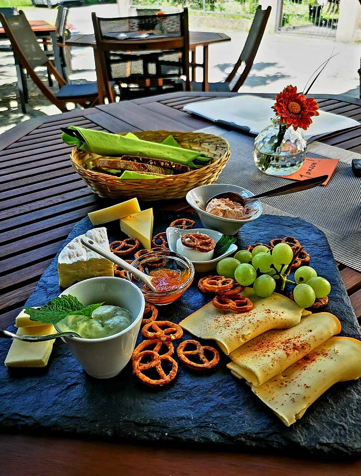 Laugenkranz mit verschiedenen Dips, Schlemmerplatte, Ofen-Feta,